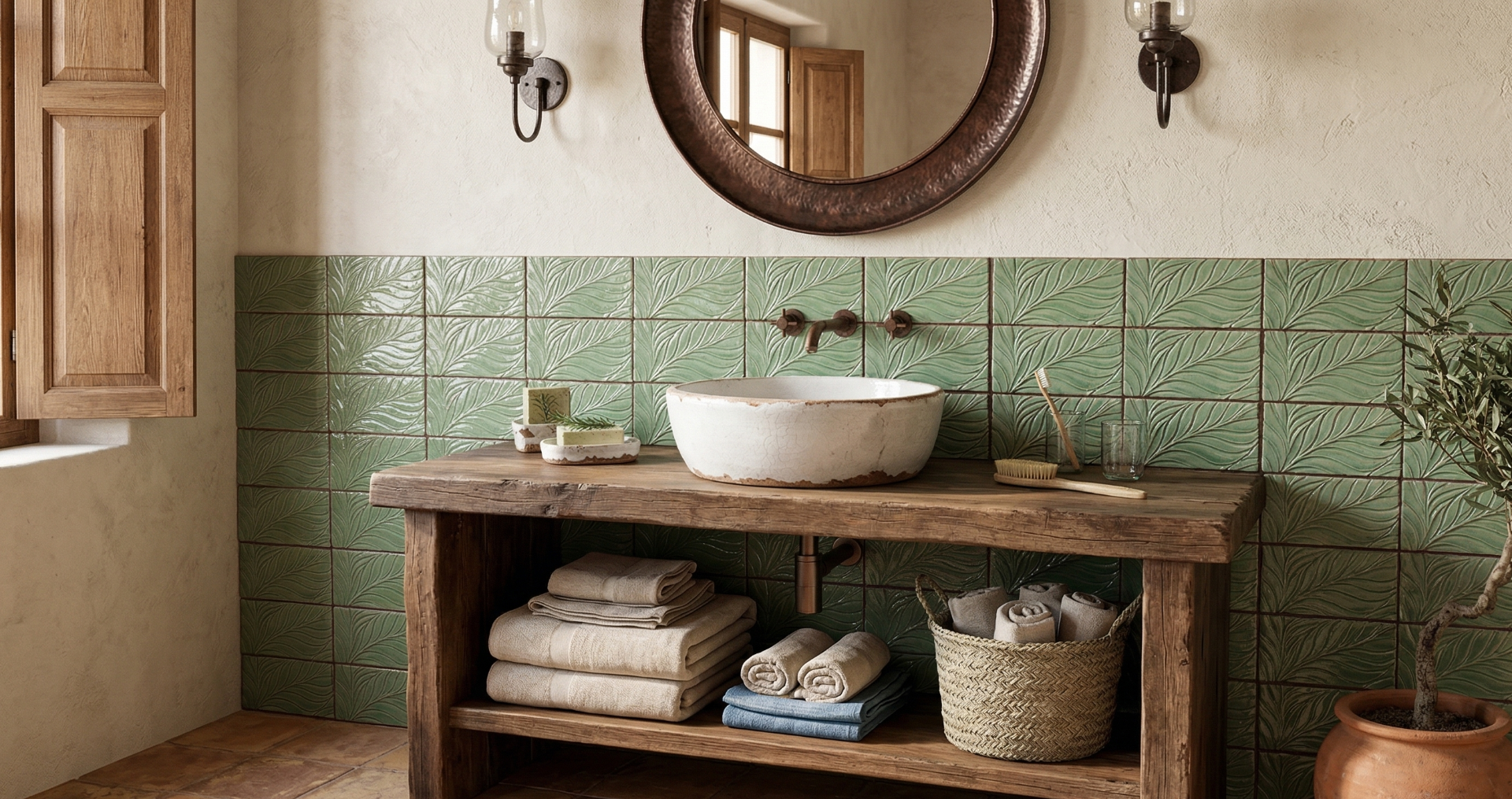 Ambienti ideali: Perfetta per creare un'oasi di benessere nella zona bagno (splendida in abbinamento ad arredi in legno grezzo e fibre naturali), ideale come paraschizzi fresco e vitale in cucina, o per donare un'atmosfera rilassante a qualsiasi parete della casa.