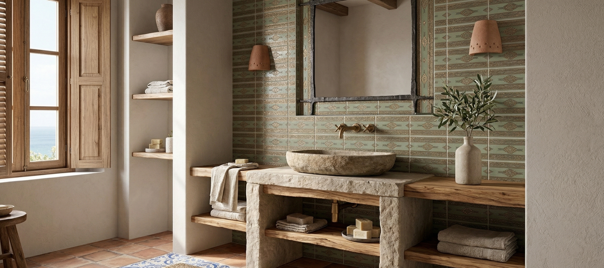 Ambienti ideali: Magnifica per valorizzare la zona bagno (creando una sinergia perfetta con lavabi in pietra naturale e arredi in legno massello), ideale come rivestimento di carattere in cucina o per pareti d'accento dal forte impatto scenografico.